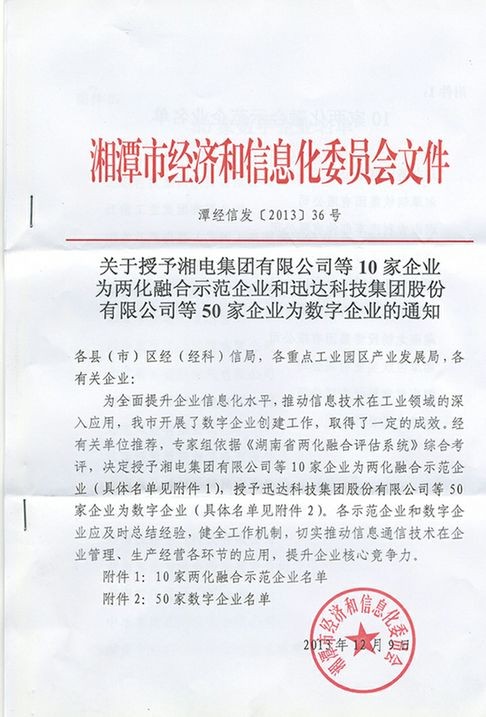 公司在湘潭經(jīng)濟和信息委員會數(shù)字企業(yè)創(chuàng)建評審中,榮獲50家數(shù)字企業(yè)稱號。標志著我司信息化數(shù)字化建設(shè)工作得到政府部門的支持和認可,預(yù)示著公司管理向科學(xué)化、信息化方向穩(wěn)步提升。